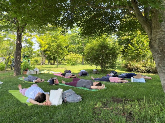 3日間同行いただくヨガインストラクターは、十勝を拠点に活動する角畠あさみ先生。「ヨガで地域活性化」をコンセプトに、お寺ヨガやファームヨガ、ガーデンヨガなど、さまざまな場所で出張ヨガを展開しています。