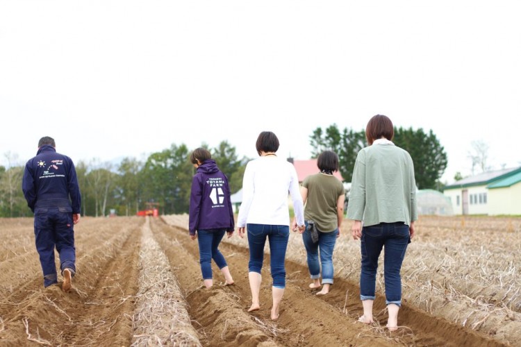 2日目も朝ヨガでスッキリと1日をスタート。午前は日本の食料基地とも言われる十勝の農業を体験。本格的な農作業や、昼食に使用するハウス野菜の収穫を行います。農作業体験のあとは、畑の中を裸足で歩く「アーシング」を体験。素足をダイレクトに地面と繋ぐことで、体内に溜まっている電気を体外に放出する効果があると言われています。また、足の裏から伝わる土の感触はとても新鮮です。先ほどハウスで収穫した野菜を使って、農家ご飯を作ります。シンプルな味付けなのに驚きのおいしさです。午後は中札内村の名所を自転車で巡ります。畑の中を自転車で走ると気分も爽快!ジェラートが有名な十勝野フロマージュにも立ち寄りひと休み。
